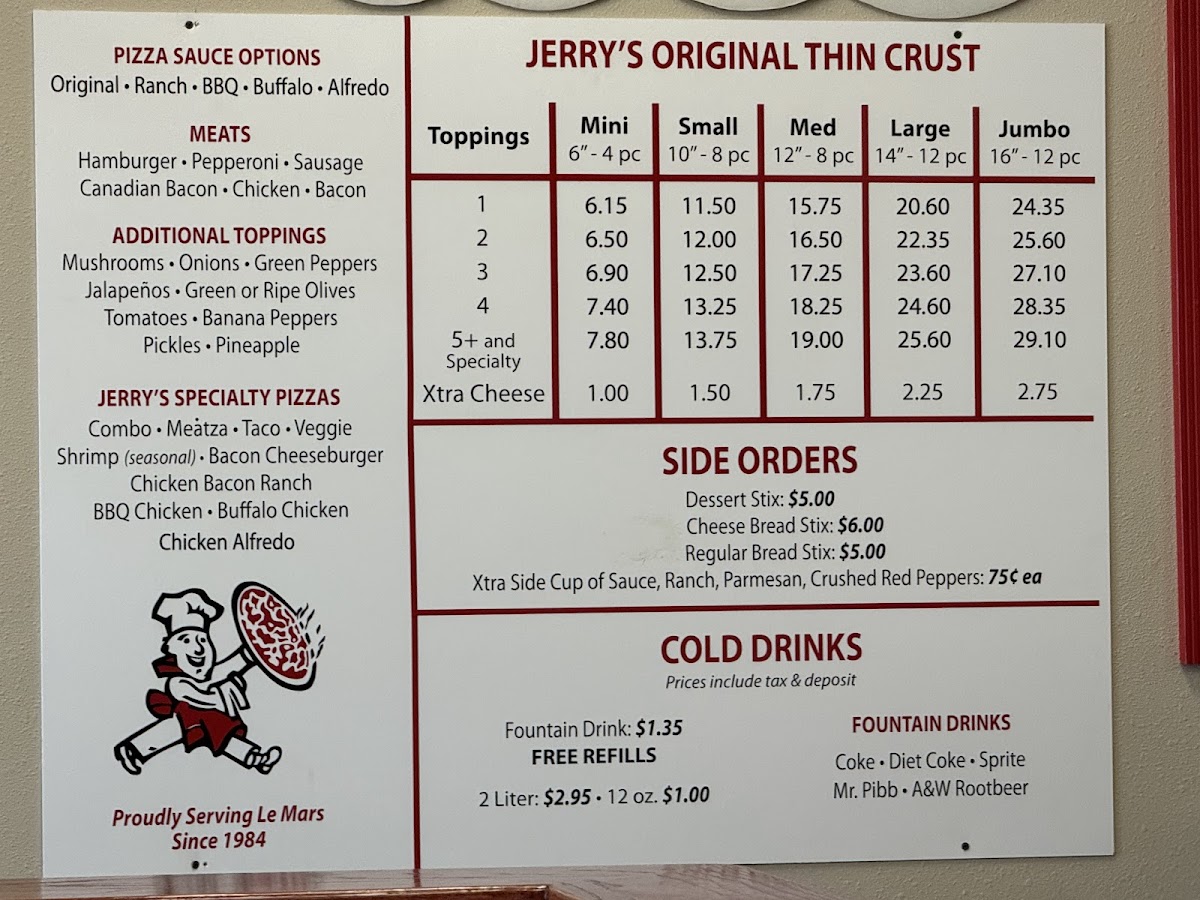 Jerry's Pizza Menu